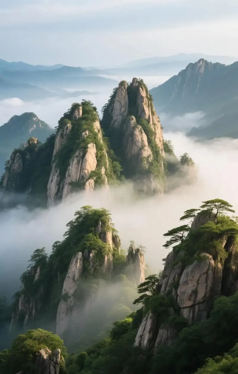 尧山这个山,怎么讲呢,它不是那种一看就很险的山,也不是那种台阶修得特别工整的山,就是一种很野的感觉,但野得恰到好处。我当时爬到半山腰的时候突然明白了一件事,很多人爬山都想着冲顶打卡,但其实你慢慢走,看看路边那些石头的纹理,看看山里的云怎么飘,这个过程才是真正有意思的部分。石人峰那一带的石柱,说实话真的震撼,那种垂直的玄武岩柱子一根根立着,有的地方还能看到六边形的横截面,就是课本里讲的那种地质结构活生生摆在你眼前,你说神奇不神奇。
