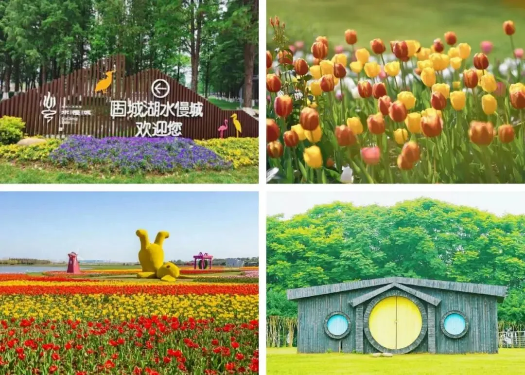 餐后前往固城湖水慢城,占地八千余亩的湖畔度假胜地。漫步花海,五彩斑斓的郁金香花田与风车湖水相映,宛如欧洲小镇。
