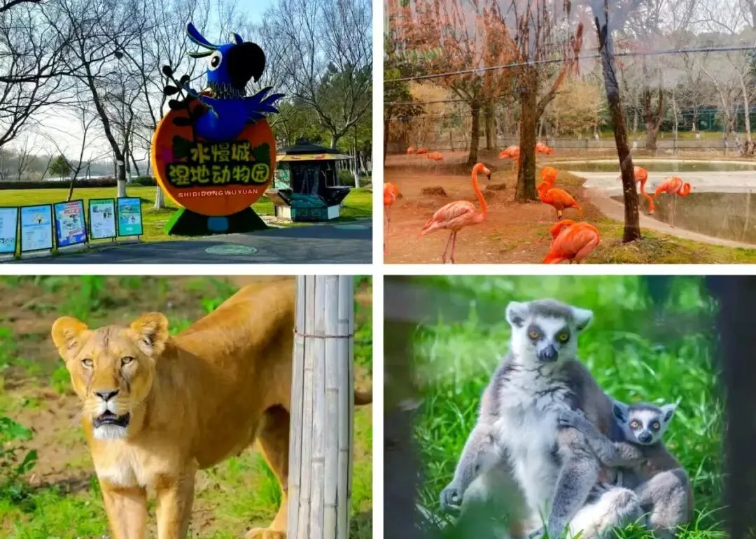下午可乘坐观光车或水上画舫穿行园中,探访湿地动物园观赏火烈鸟、东北虎等动物,在造型各异的桥上凭栏远眺。