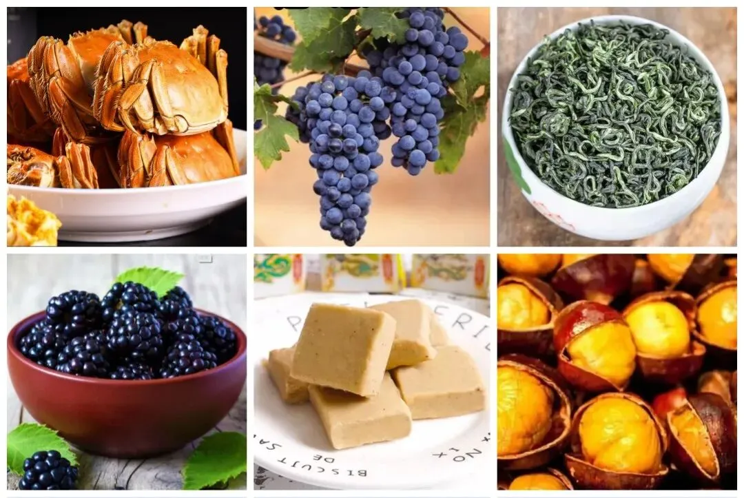 饭后打包几样高淳好物:固城湖螃蟹、红松葡萄、青山碧螺春、白马黑莓、老街糕点、高淳板栗。带着这些美味回家,旅途的甜,都在嘴里化开啦!