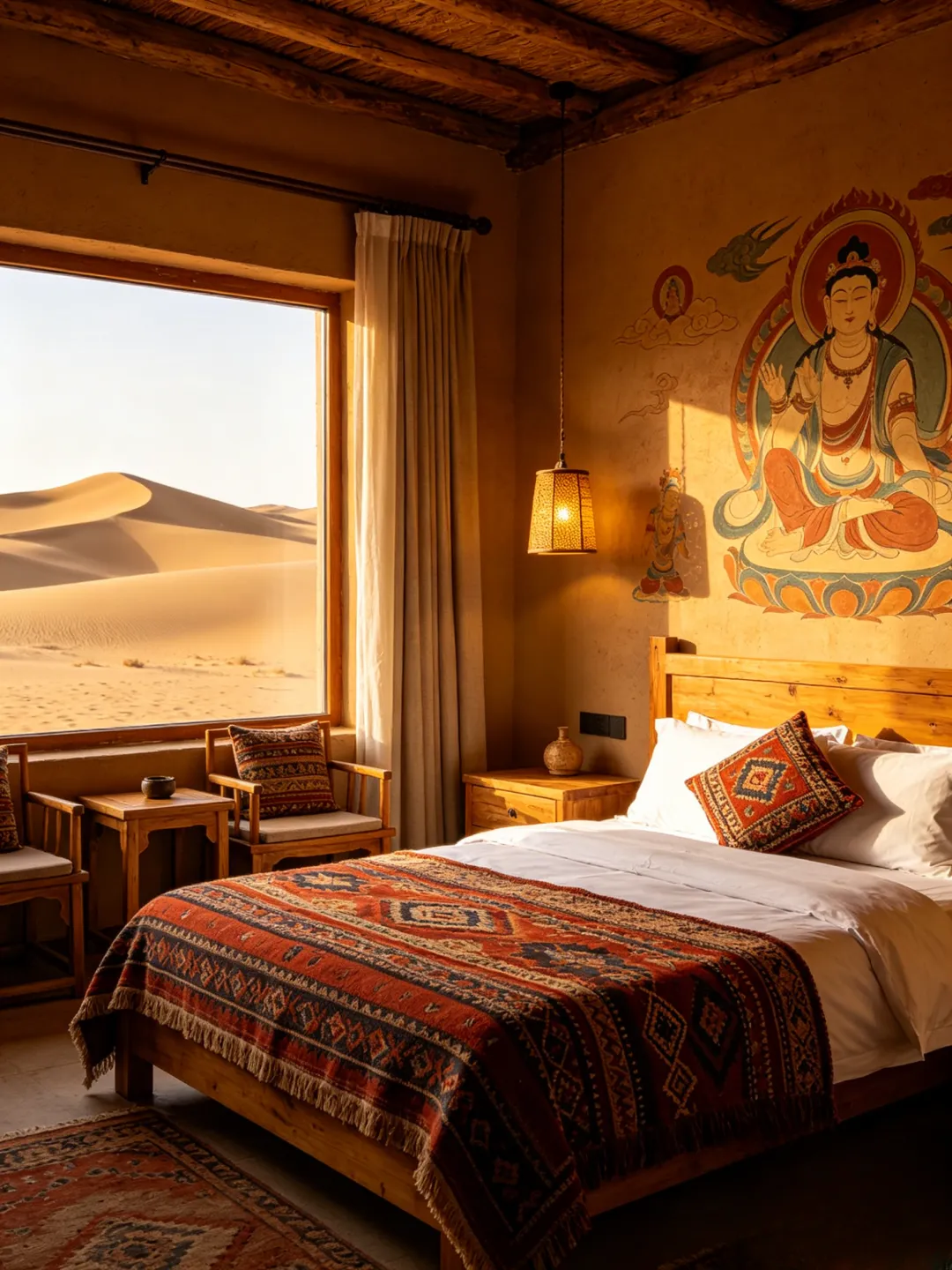 敦煌|鸣沙山脚下的沙漠星空民宿藏在鸣沙山脚下的沙漠院落,推窗就是连绵的沙山,步行即可到达月牙泉景区。民宿是极简的西北侘寂风,保留了黄土民居的质朴,又融入了现代的舒适感。夜晚可以在院子里看银河漫天,听沙鸣阵阵,还有篝火、烧烤、星空下午茶,把大漠的浪漫拉满。 扎尕那|藏式山居民宿坐落在扎尕那的半山之上,推窗就是雪山、草甸、藏寨,清晨躺在床上就能看日出晨雾,夜晚枕着星河入眠。民宿是原生态的藏式风格,木质结构搭配藏式软装,温暖又治愈,老板是本地藏族人家,会做地道的藏餐,还能带你体验骑马、徒步,沉浸式感受藏地生活。 张掖|丹霞田园民宿距离七彩丹霞景区仅 10 分钟车程,看完日落不用赶夜路,是旅途的绝佳落脚点。民宿是田园风的院落,白墙灰瓦,种满了花草,房间里有大大的落地窗,抬头就能看见祁连山的雪峰。老板会做地道的张掖美食,清晨的手工馒头、农家小菜,满是烟火气。 兰州|黄河边河景民宿坐落在黄河岸边,步行即可到达中山桥、白塔山,是兰州旅行的绝佳居所。民宿是极简的工业风,大大的落地窗直面黄河,白天看黄河穿城而过,夜晚看黄河两岸的灯火璀璨,躺在床上就能感受兰州的浪漫。