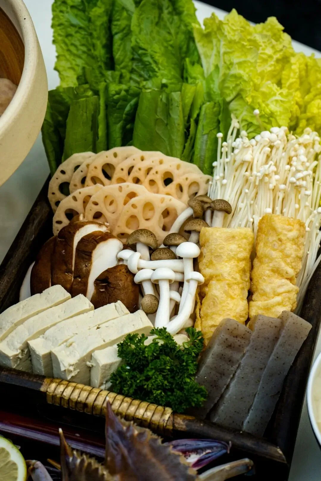 传统火盆上放上砂锅,加以白菜、豆腐、五花熏肉等食材,配上美容养颜的黄豆豆腐、滋补养肾的黑豆豆腐、清热袪火的绿豆豆腐。以素为主,荤素搭配、油而不腻,砂锅始终热乎吃起来味道淳厚,香味怡人。