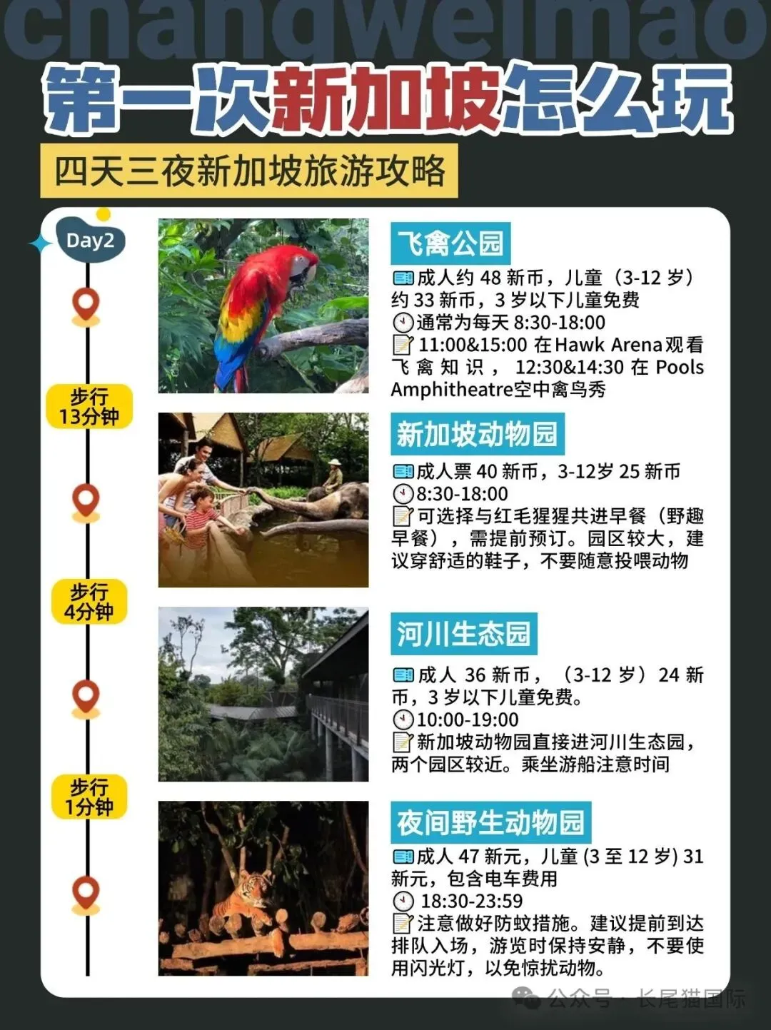 Day2️⃣飞禽公园→新加坡动物园→河川生态园→夜间野生动物园