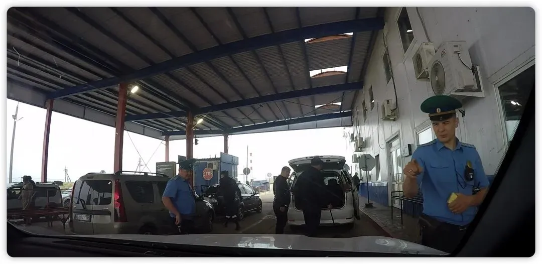 俄罗斯一侧的房子稍微豪华一点——搭了个简单的顶棚,不用再现《雨中情》的一幕。办理速度比哈国要快,我借用海关的厕所一用的时间,出来后发现居然可以放行了。