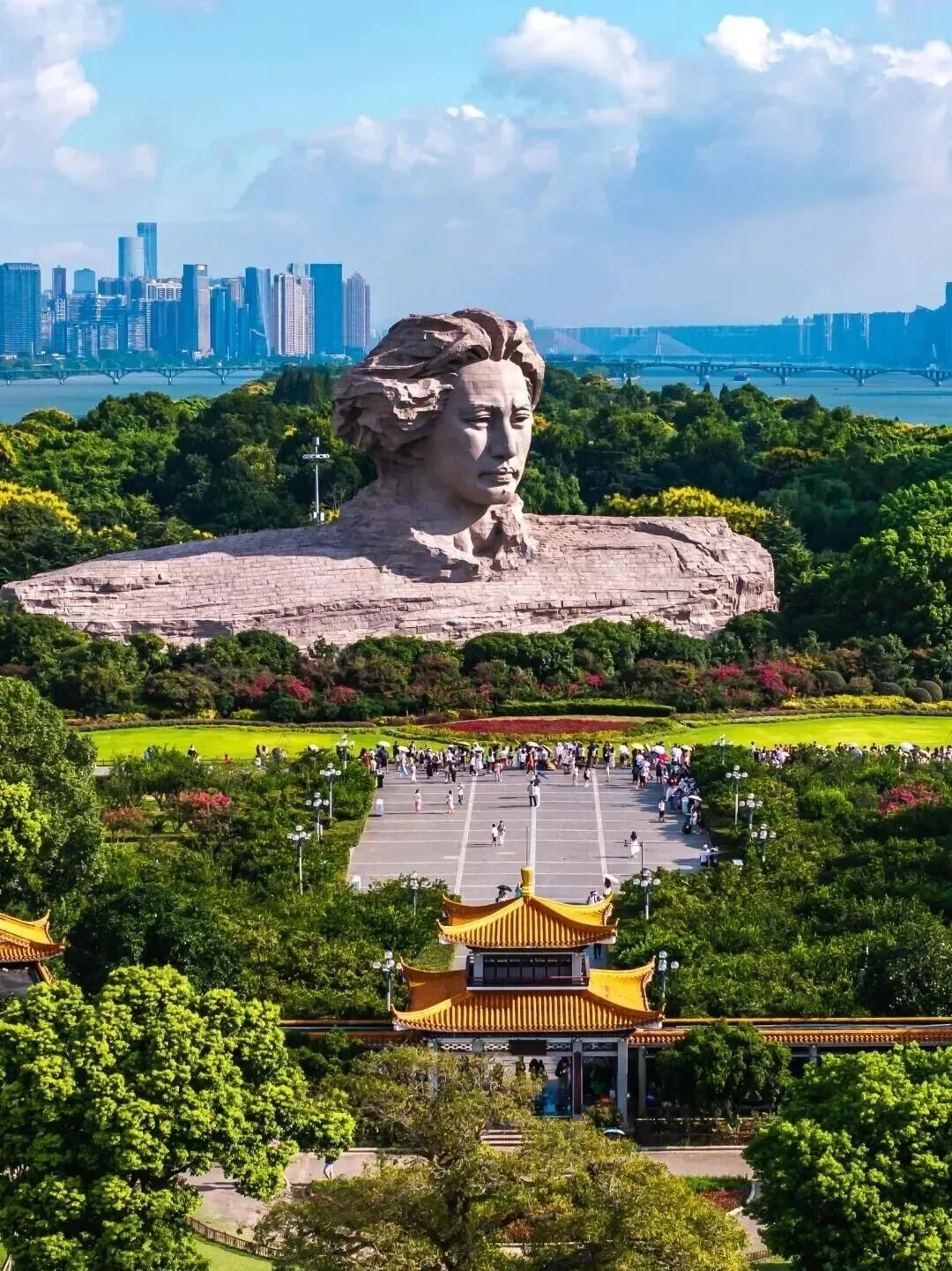 橘子洲的标志性景点,国内最大伟人雕塑,高32米,长83米,真的太震撼了!近距离看到伟人那深邃的目光,仿佛能感受到他对这片土地的热爱和期望!基座内设展厅,可以参观。