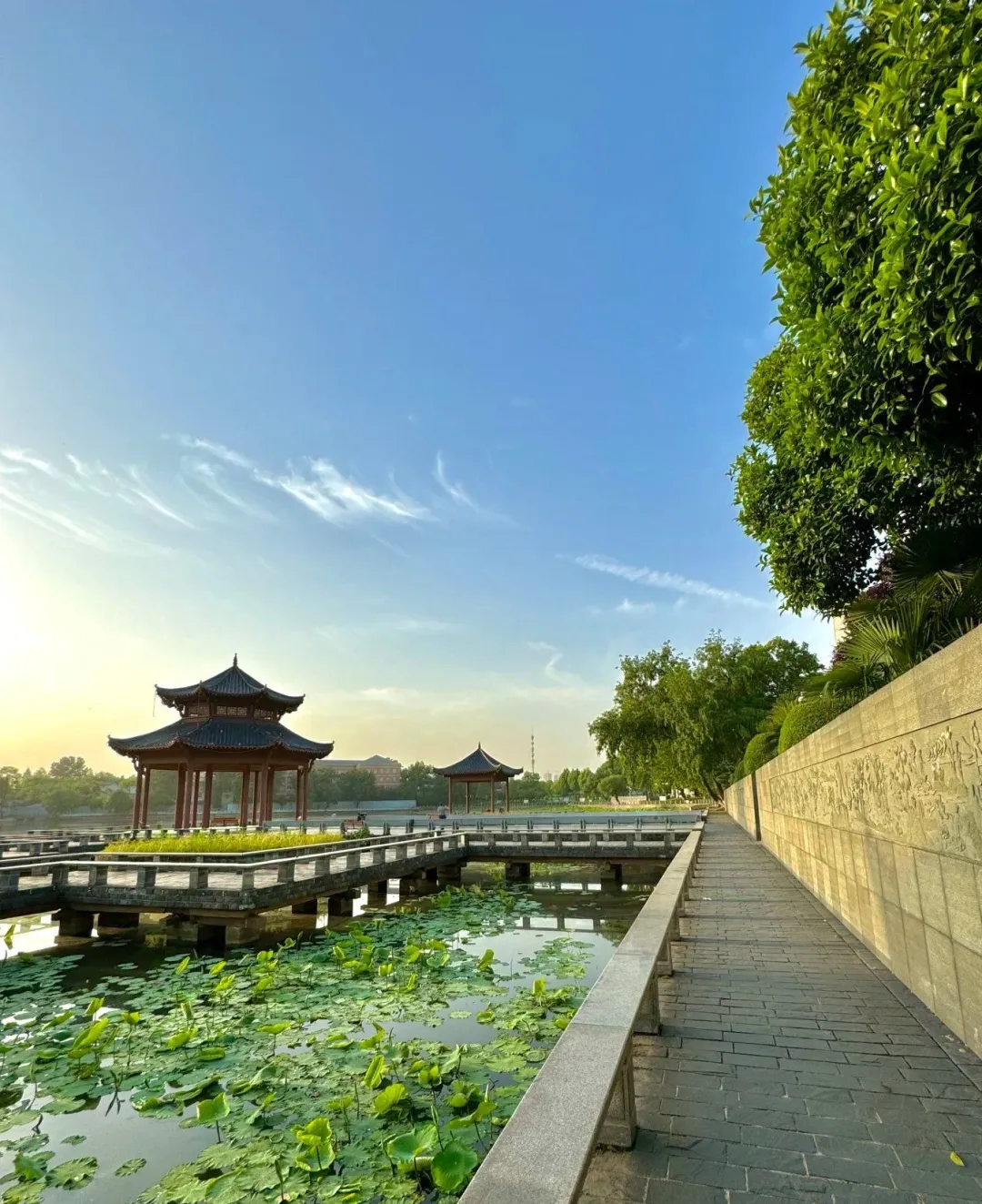 然后就是莲花湖公园,这个是完全免费的,本地人遛弯的地方,湖边走走挺舒服的,五一那会正好有荷叶了,虽然还没开花吧,但是绿油油的一片也好看,关键是人不多,不像那些网红景点挤得要死,我去的时候还看到有人在钓鱼,特别安静,就是没啥吃的,得自己带点零食
