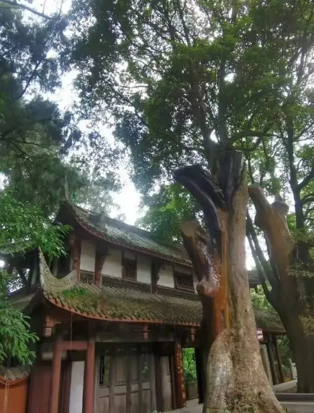 寺里的两株桢楠树,是**“天府十大树王”**之一,树龄超1500年,高达20多米,树干粗得要几个人才能合抱。