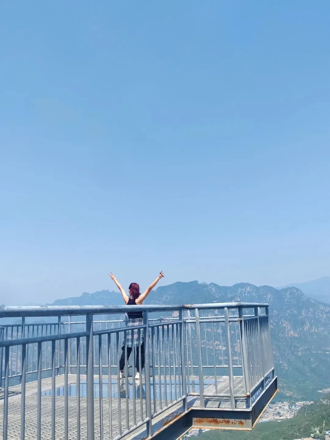 除了蹦极,还能坐索道登顶麒麟山,俯瞰百里画廊全貌;从索道下来,漫步“七彩祥云”步道,多巴胺配色的台阶随山势铺展,步步皆是风景;顺路打卡九十九阶叠瀑,溪水层层跌落溅起碎玉般水花,动静之间皆是自然之美;乘空中客车便是此行的高光时刻。360°开放式观景设计,让视野毫无遮挡,随着轿厢缓缓驶向南山观景台,十渡的山水全貌渐渐清晰。