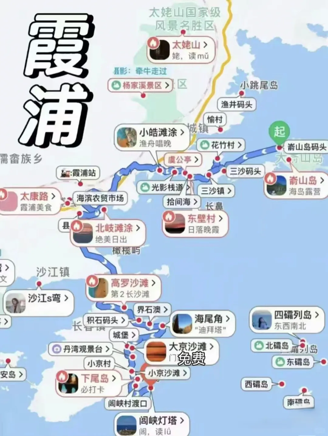 ✅ 必去景点:北岐滩涂、小皓海滩、东壁村、花竹村、沙江S湾
