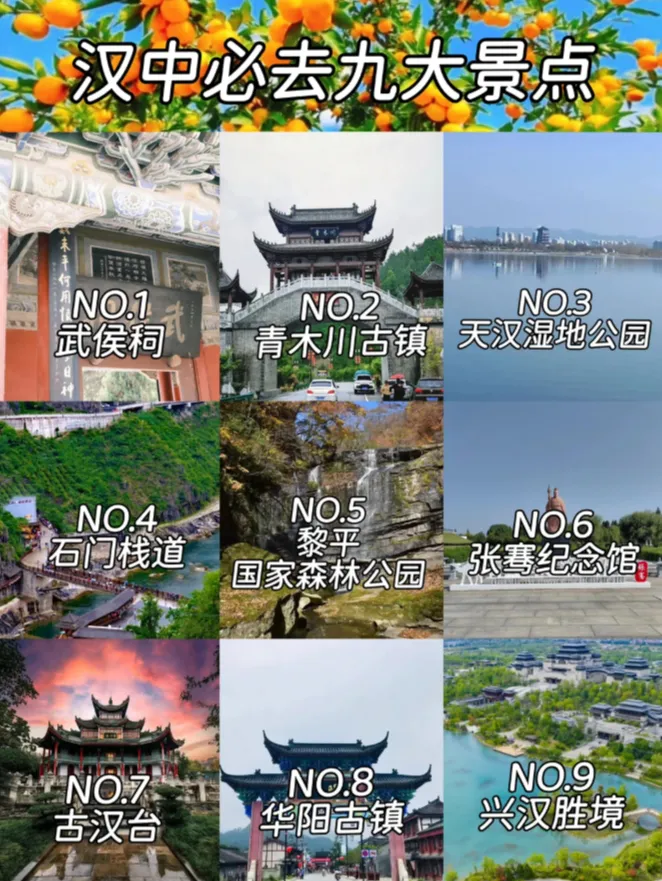 ✅ 必去景点:龙头山、兴汉胜境、武侯祠、石门栈道、古汉台