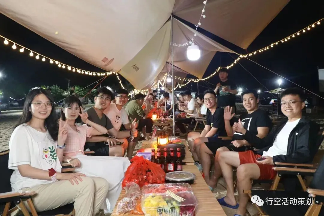 第一天:上午到达惠州巽寮湾双月湾、中午特色农庄午餐、下午攻防箭团建、晚上沙滩轻奢露营烧烤、住千玺酒店高层海景房