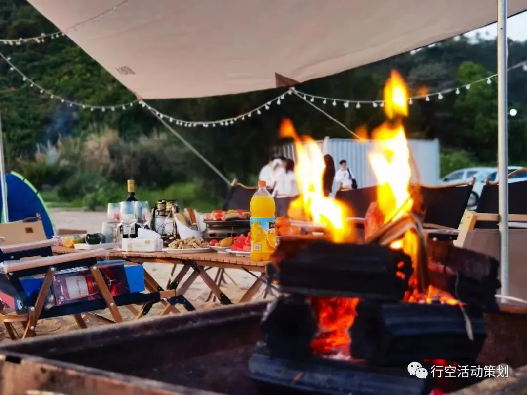 【沙滩天幕露营烧烤】烧烤的喜悦在于有美食,有美景,当食物在炭火的炙烤下慢慢升温,期间撒入各式调料,为食物加入不同的灵魂,成为令人欲罢不能的美味。
