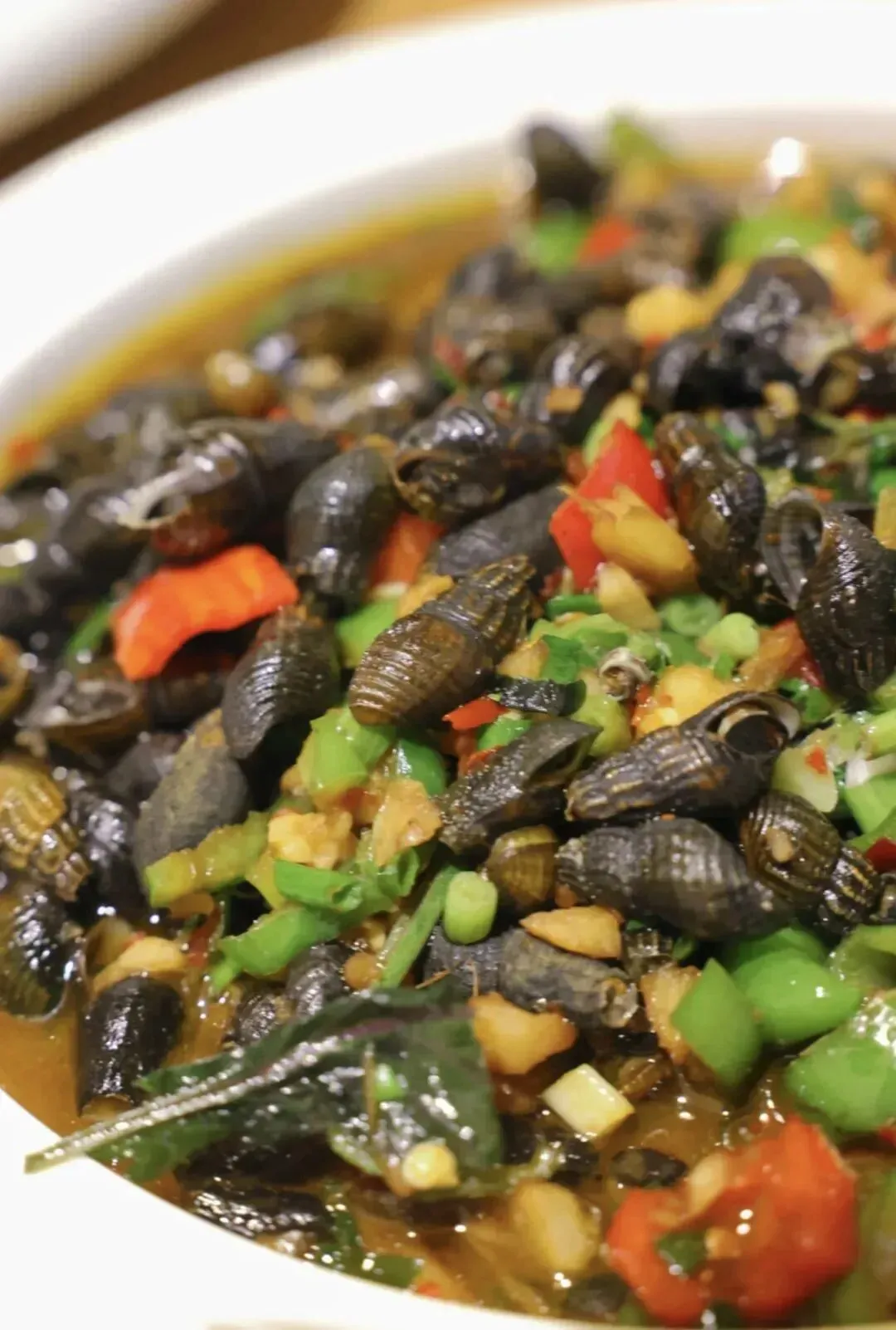 青蛳生长在清澈的溪水中,壳薄肉紧。炒的时候加紫苏、辣椒、姜蒜,猛火快炒。嗦一口,鲜中带辣,回味微苦,清凉去火。我童年最美好的回忆之一,就是夏天和爸爸在中村乡的溪流中捡青蛳。