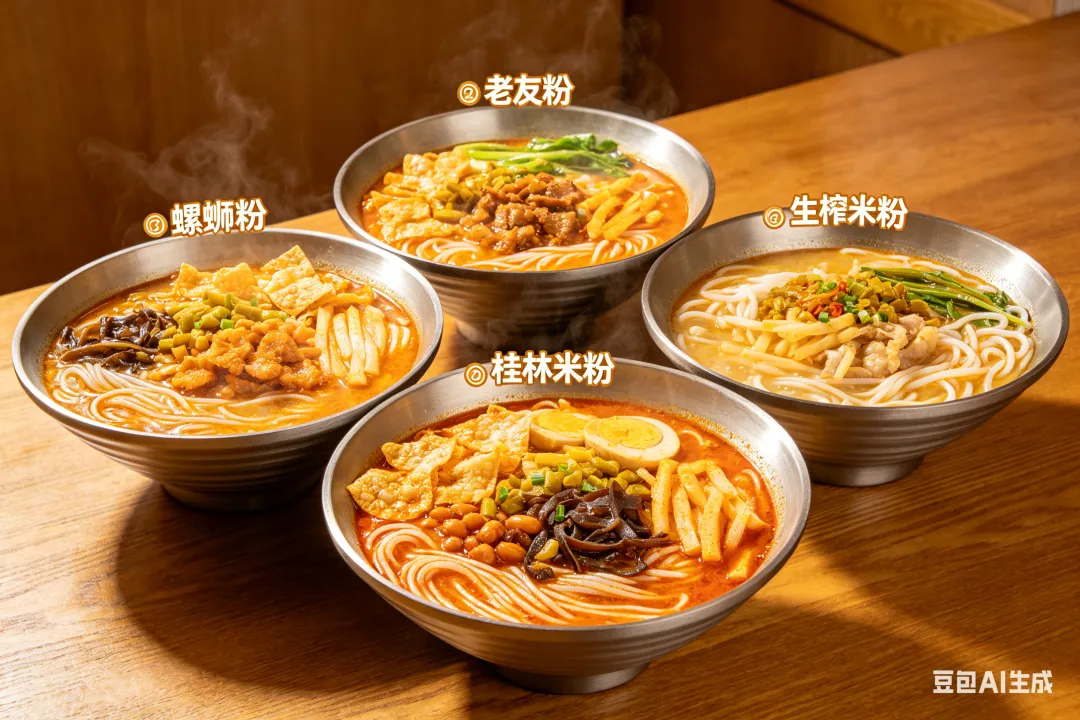 - 主食:螺蛳粉、老友粉、桂林米粉、生榨米粉