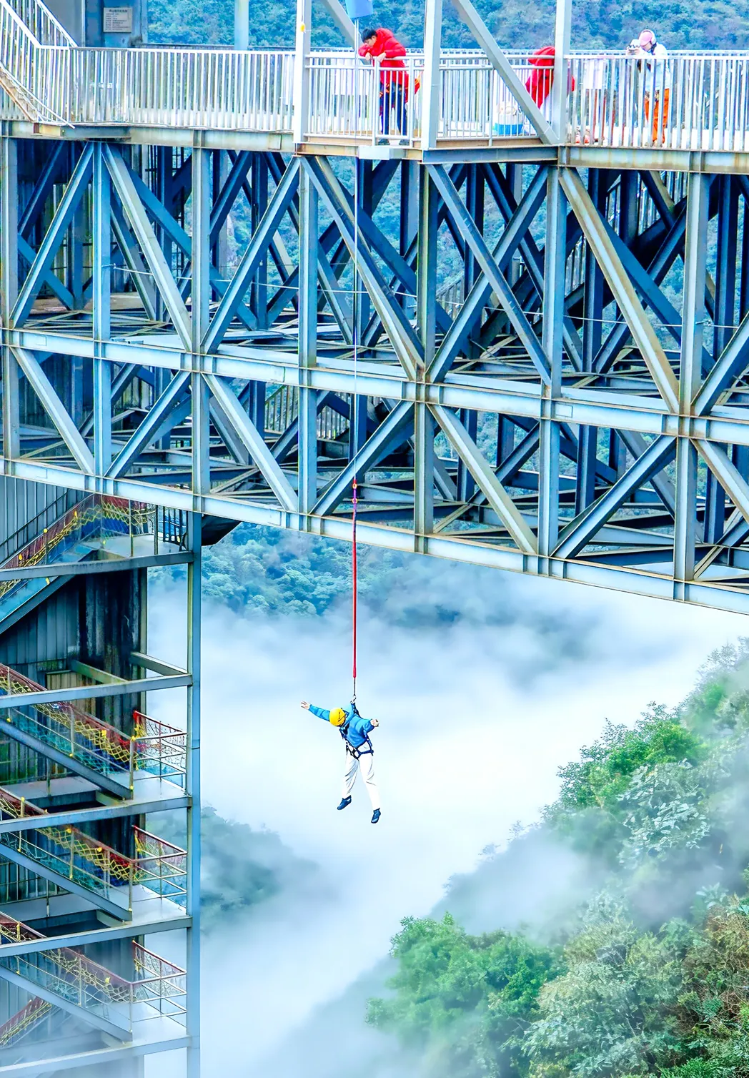 在云海里自由落体,耳边是呼啸的山风,眼前是翻腾的云海,把烦恼全甩给深渊。体验窝囊蹦极,做一回懒人,认怂也是一种帅气。