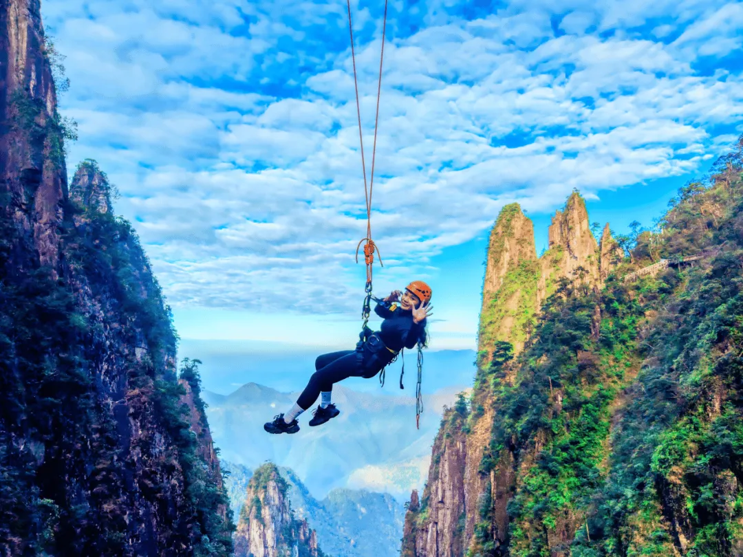 在百米崖壁边纵身一跃,化身“人形摆锤”划破天际线,脚下是万丈深渊,眼前是奇峰耸立。在落差近百米的空中来回飞荡,甩开烦恼,放飞自我。
