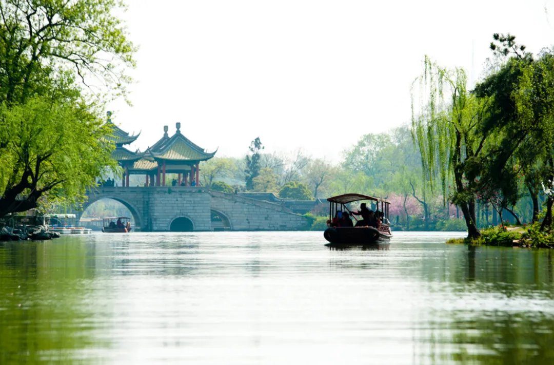 游客在烟花三月来到扬州去的第一站往往都是瘦西湖。瘦西湖的春天,是值得人们读千百遍的诗篇,从水路看她的温润,从陆路看她的明媚。
