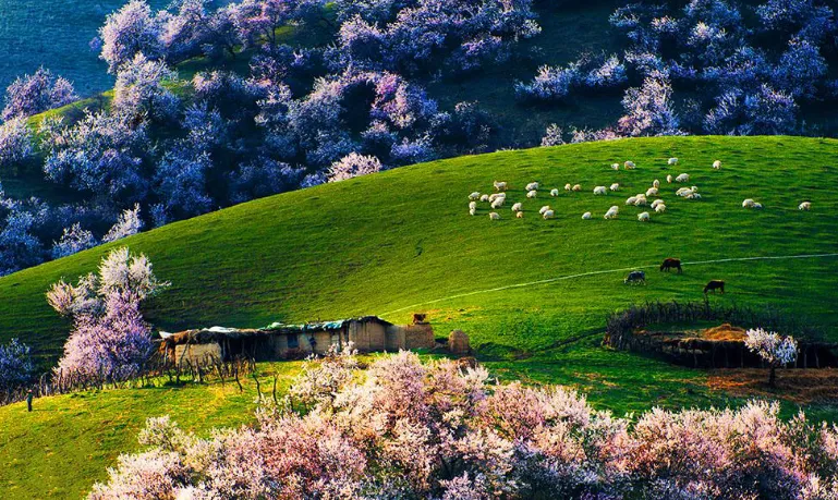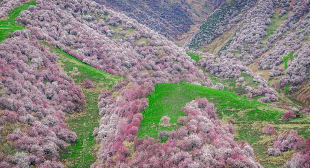 江南樱花让人无限神往,但神州之大,远在西北杏花也同样让你感到惊艳:吐尔根杏花沟位于新疆伊犁哈萨克自治州新源县吐尔根乡。