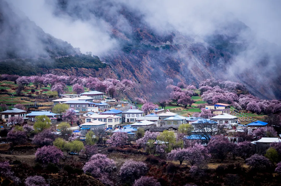 雅鲁藏布大峡谷内的桃花分布在各村落,如今的网红打卡点索松村便位于雅鲁藏布大峡谷内,另外,这里的直白村、吞白村、达林村都是赏花的好去处。
