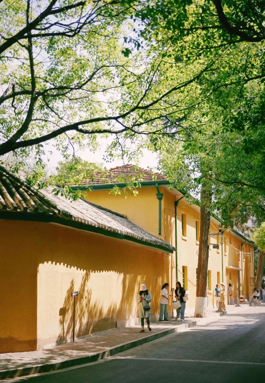 百年军校黄墙绿树,复古拍照绝佳。