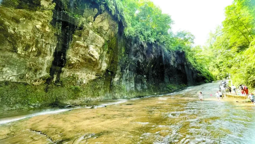 威远石板河景区是亿万年形成的穹隆地貌,因主河床为整块天然岩石而得名,全长约 7 公里。河水清澈见底,是夏季踩水、避暑、溯溪的 “天然水上游乐场”。
