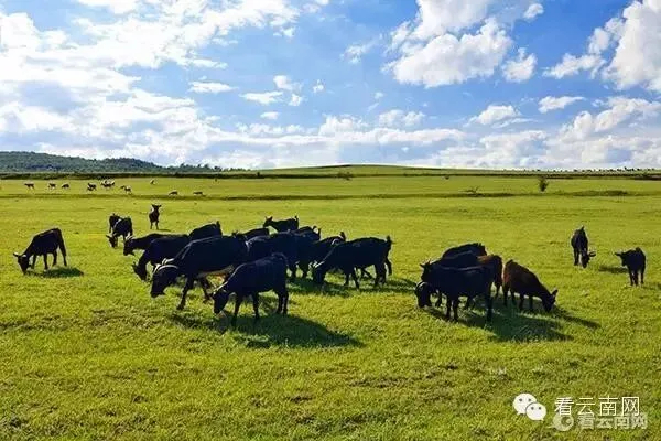 北大营距离昆明120公里,是离昆明最近的草场,海拔2100米,面积2万余亩。万亩草原,芳草萋萋,牧歌悠悠,构成一幅只可意会不可言传的醉人风情画卷。来到北大营顿时身心开阔,草场上有山丘和茂密的松树林,站在高高的草山上看着草地上散布着的羊群和牛群,使人联想到蒙古坝上草原的风光。