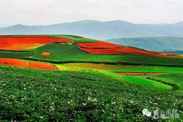 六哨乡位于寻甸中西部,是以红土地为主的高寒山区,其中六哨最出名的就是漫山遍野的洋芋。平时细碎的洋芋花本不起眼,但是每年六月底,六哨乡万亩连片、七彩壮观的洋芋花开正盛,山峦重叠,梯田交错,粉红的、淡紫的、洁白的小花骤然怒绽,汹涌成花海,形成了独特的洋芋花海景观。