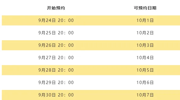 预约时间表: