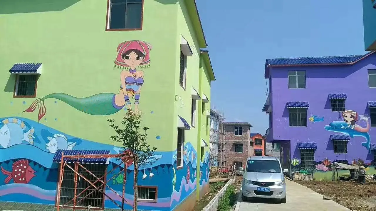 早餐后前往七彩渔村——3D墙绘中国华南第一村,(车程约20分钟,游览约1.5小时)虎头村位于广西富川瑶族自治县富阳镇新坝村委所在的一个自然村,属水库移民村,因广西第三大水库--龟石水库修建而搬迁至龟石水库边。该村素有“天然氧吧”的美称,全村松竹林立,气候温和,冬无严寒,夏无酷暑,年平均气温19C°,四周植被茂盛、景色优美、空气清新,面对龟石国家湿地公园,无限风光尽收眼底。
