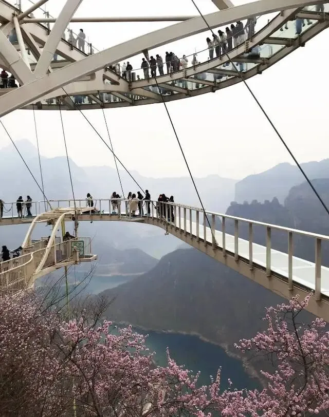 1. 祥云观景台:世界最大玻璃底观景台,悬空260米,站在全透明玻璃上,脚下是万丈深渊,眼前是太行群山,俯瞰游龙湾曲峡美景,惊险又震撼。