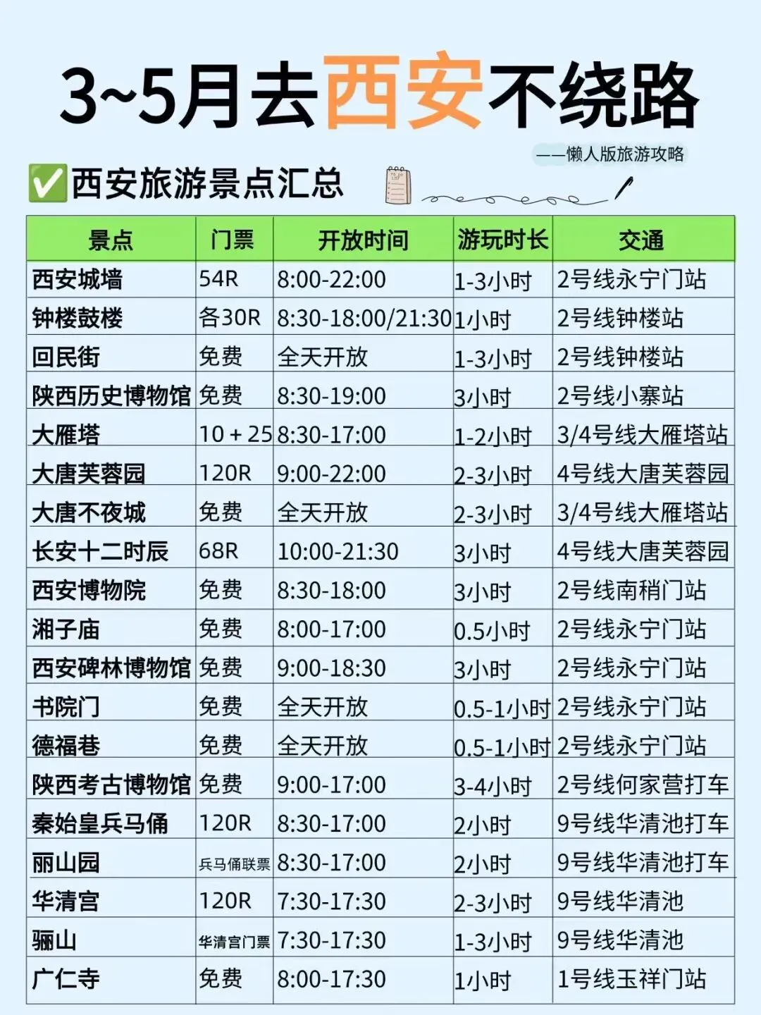 3-5月西安旅游攻略|4天3晚不绕路