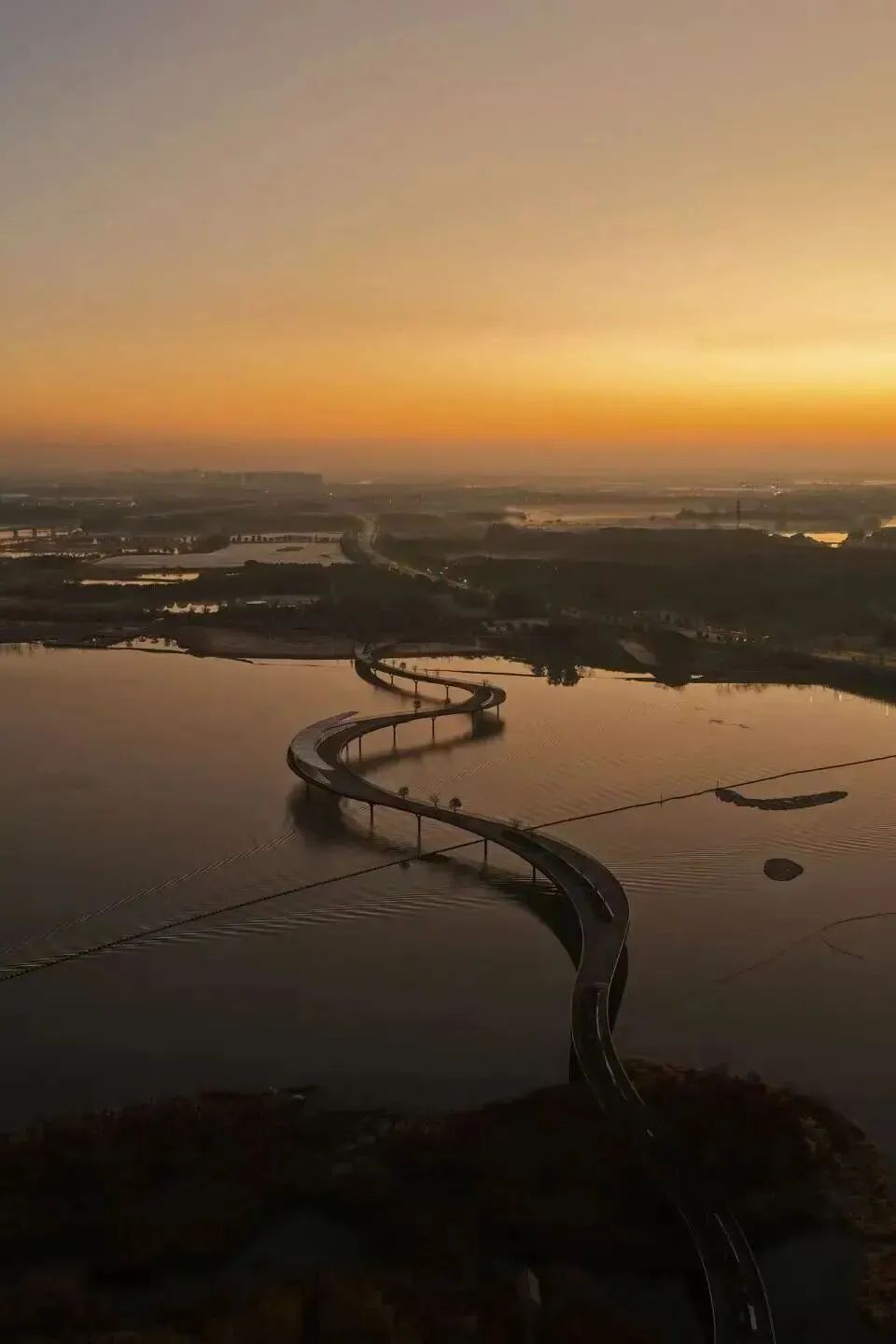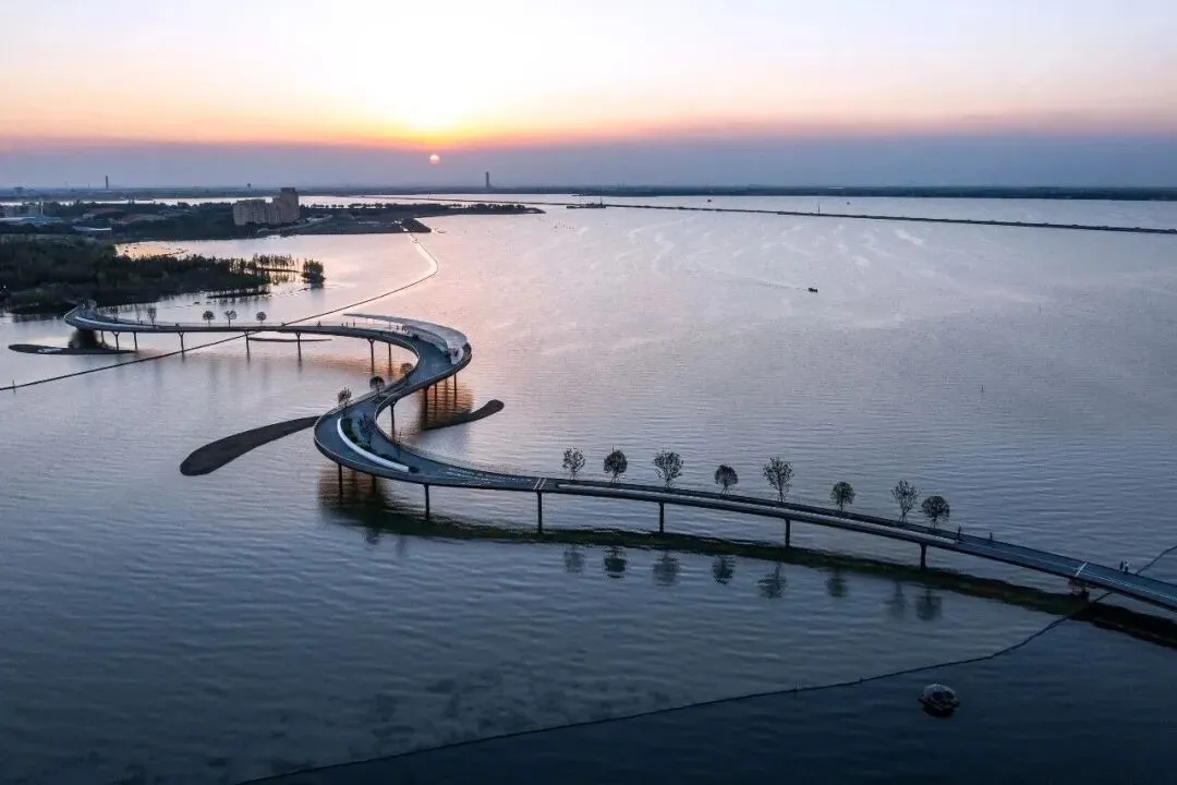 元荡慢行桥曲线造型超上镜。平整的骑行道一路串联生态美景,累了就去驿站歇脚,服务也很贴心。