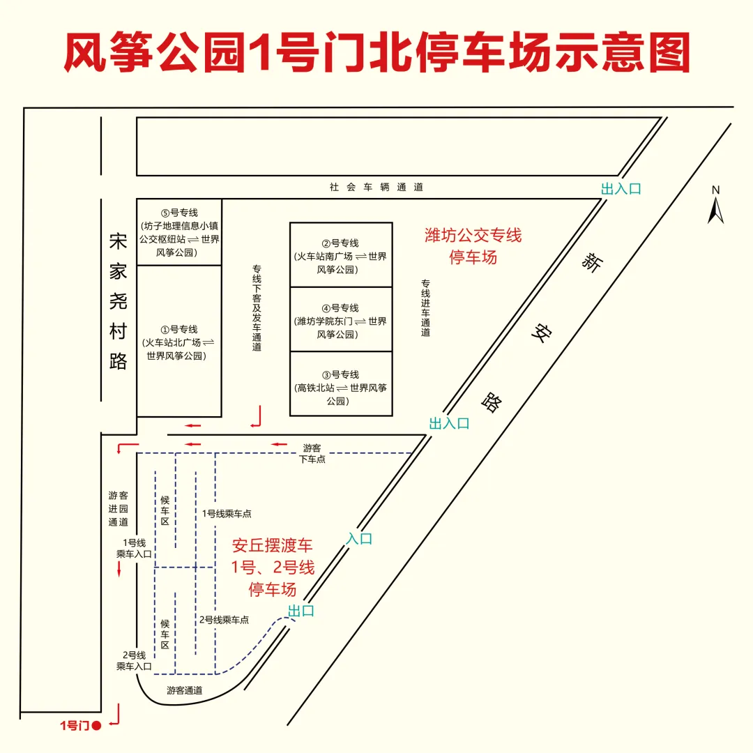 ①号专线(火车站北广场⇌世界风筝公园)。线路走向:由火车站北广场(和平路健康街路口以南路东)发车,经和平路-健康街-潍州路-南环路(八马路)-动力路至世界风筝公园1号门北停车场。