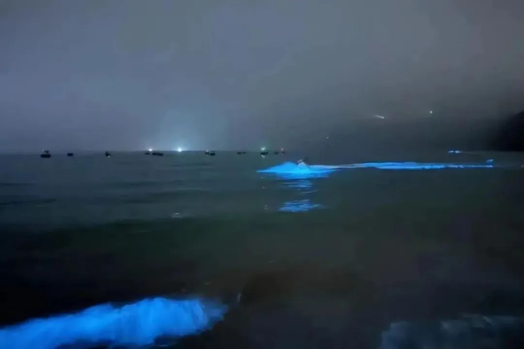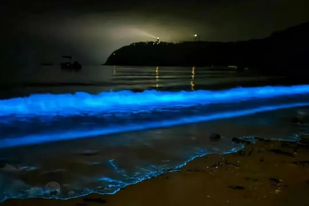 之前带火平潭岛的“蓝眼泪”,涠洲岛也有。“蓝眼泪”其实是一种浮游生物,遇到海浪拍打时会呈现晶莹的蓝光。