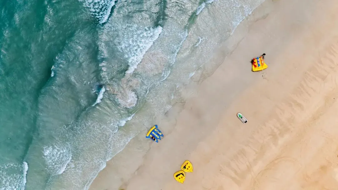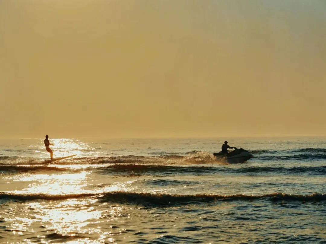 稍微刺激一些的海上游玩项目,都集中在石螺口海滩,潜水、摩托艇、香蕉船、帆船、沙滩车等项目。