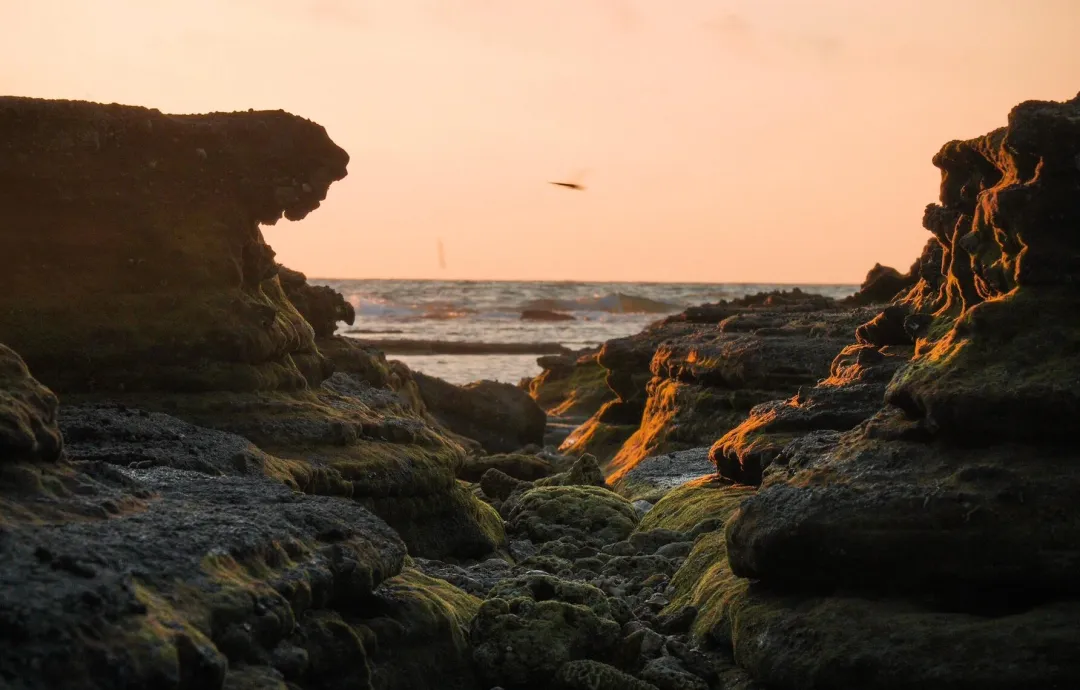 五彩滩 位于涠洲岛的东海岸,来五彩滩最推荐退潮后来看日出。记得看潮汐表(官网小程序上可查询),退潮后斑斓绚丽的火山岩裸露,坑坑洼洼、层层叠叠,在夕阳的照耀下又是一番风味。