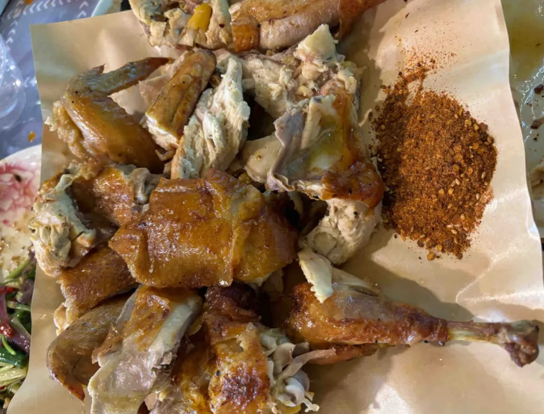 涠洲岛香蕉鸡 地址:石盘河村村口对面,五彩滩附近 香蕉鸡是涠洲岛的特产,就是长期喂香蕉的鸡,肉质更加紧实,味道更鲜美,烤过之后外脆里软,汁水丰盈。听我的,千万不要买路边摊的香蕉鸡,又干又柴还不好吃。这家店是现杀现烤的,老板还很热情,店里的香蕉随便吃。