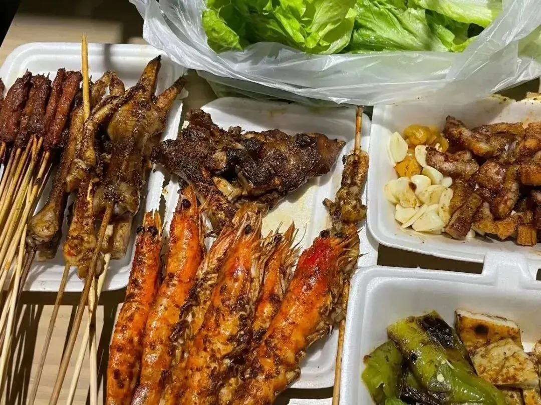 458烤吧 地址:滴水村附近夜宵首选,住在附近的朋友可以来打卡。味型偏甜辣口,特别表扬五花肉,我一个不爱吃肥肉的人,都全部吃完了,简直太香啦!还有烤茄子、烤猪蹄、烤虾都是一绝。