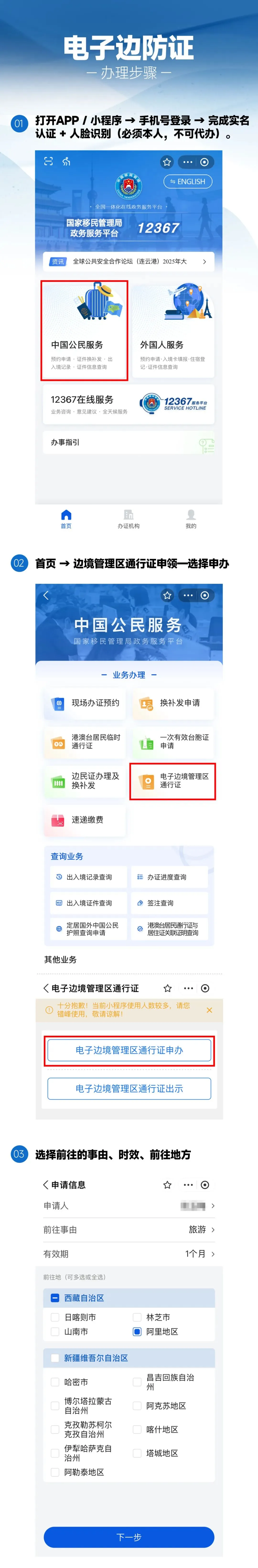 首页 → 边境管理区通行证申领。