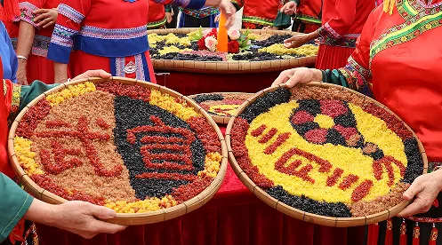 别忘了品尝那一份来自节日的馈赠——五色糯米饭。黑、红、黄、白、紫,取自天然植物,糯香扑鼻,是壮乡人最深情的味觉记忆。