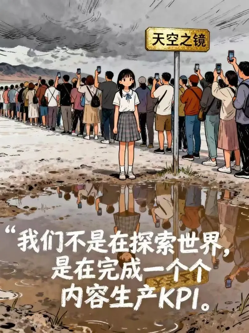 我们不是在探索世界,我们是在完成一个“内容生产任务”。我们不是在感受自然,我们是在为手机屏幕,寻找下一个可以炫耀的素材。