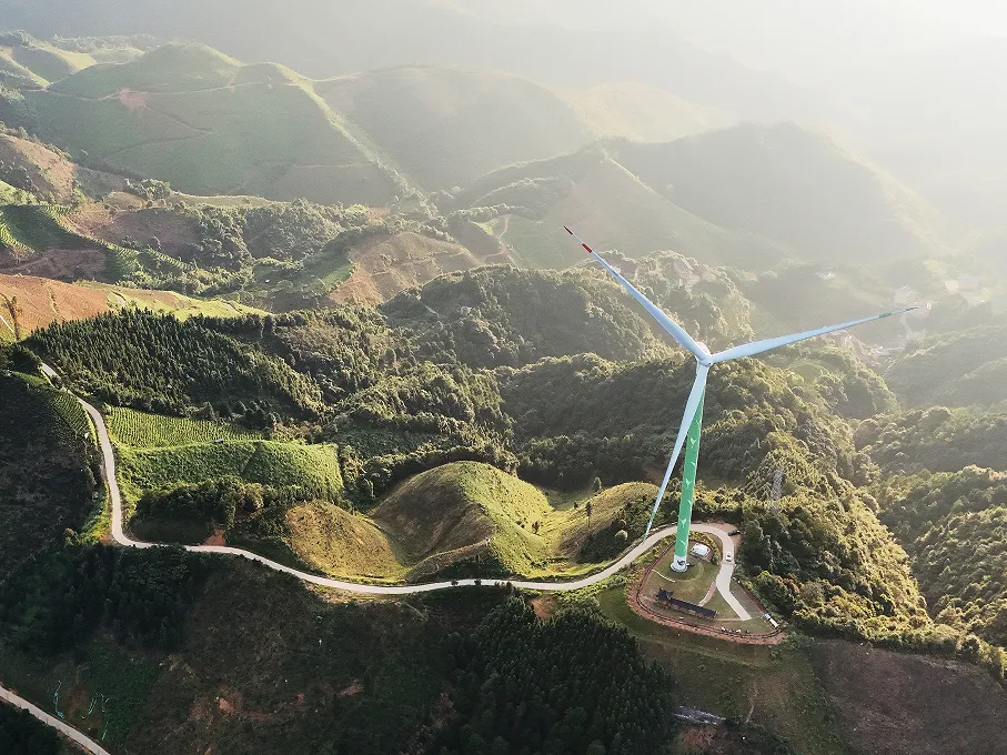 巨型风车矗立山脊,风叶绘有六堡茶元素,与连绵青山、云海星空相映成趣。这里是观日出、赏日落、看银河的绝佳地,兼具生态风光与茶乡文化,是六堡茶旅融合的必打卡点。