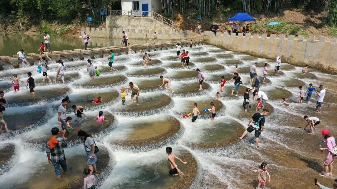 网红亲水打卡地,溪流层层叠叠如龙鳞。天气晴好时,带孩子踩水嬉戏、捞小鱼、打水仗,清凉又治愈,随手拍都是亲子大片。