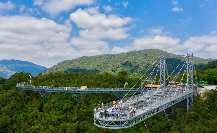 桥本身是个悬空栈道,建在山腰上,走在上面能看到整个海口城市的全景,天气好的时候还能看到海,这个视角在海口其他地方很难找到,因为海口不是那种有很多高楼的城市,也不是那种有观景台的地方,所以这座桥就成了看海口全景最好的点。很多人会在桥上拍照,但其实最值得做的事是在桥上站一会,什么都不干,就看着城市看着山看着天空,那种感觉是你在城市里完全体会不到的,不是震撼也不是感动,就是一种"原来我生活的地方长这样"的清醒。