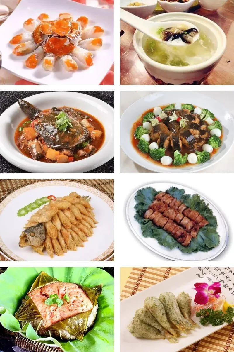 品奉化特色农家菜:红膏炝蟹、黄鱼海参羹、冰糖甲鱼、锅烧河鳗、腐皮包黄鱼、网油包鹅肝、荷叶粉蒸肉、苔菜拖黄鱼等,时令蔬菜按季节更换。