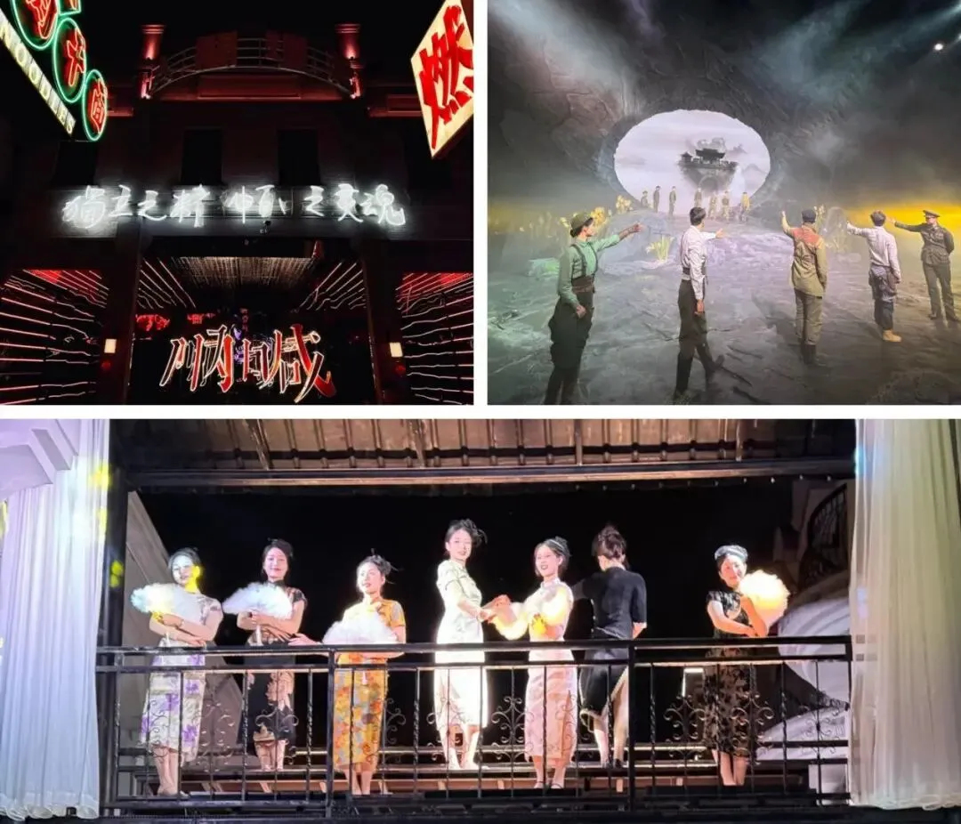 傍晚转至应梦里小镇,华灯初上时百乐门歌舞升平,民国风情街霓虹闪烁,沉浸式演艺轮番登场,夜色愈浓愈精彩。