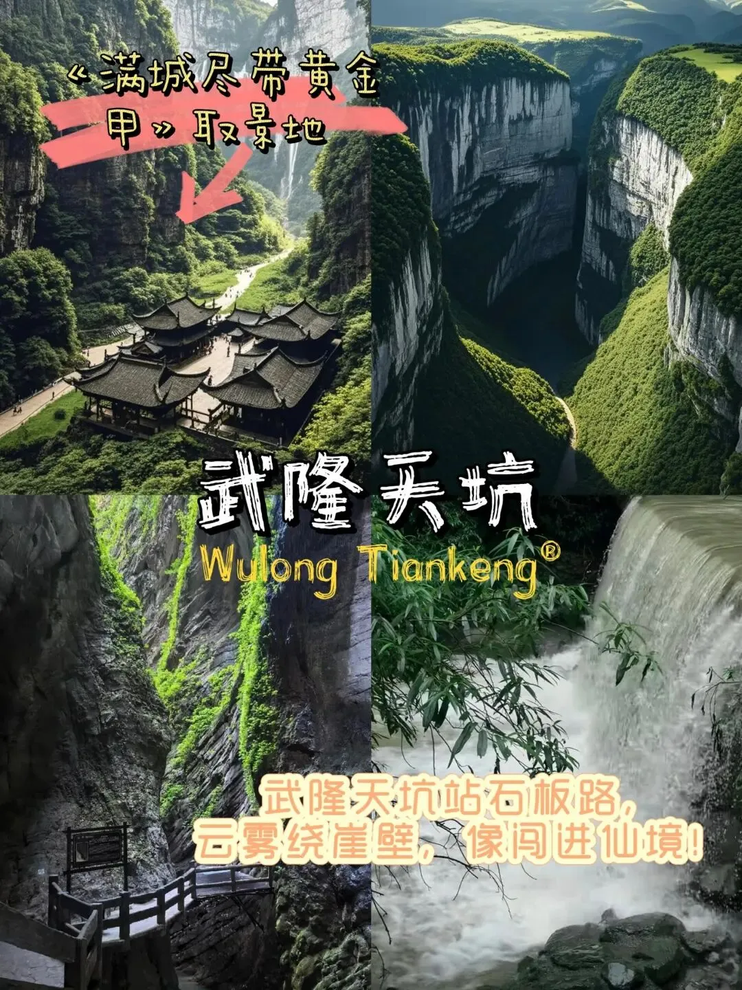 • 天生三桥:世界自然遗产,天然形成的三座石桥气势恢宏,武侠风拉满,《满城尽带黄金甲》取景地,沉浸式感受大自然的鬼斧神工。