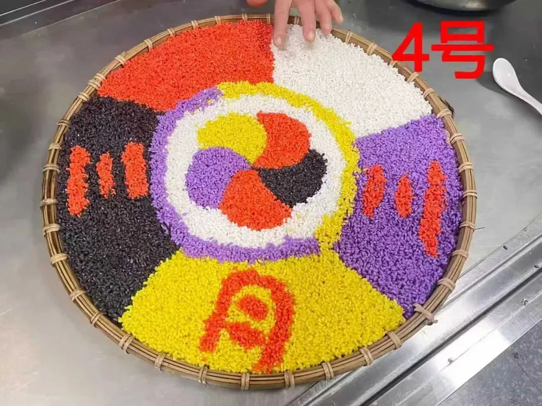 用枫叶、红蓝草等天然植物染色,黑、红、黄、紫、白,清香软糯,节日C位美食。