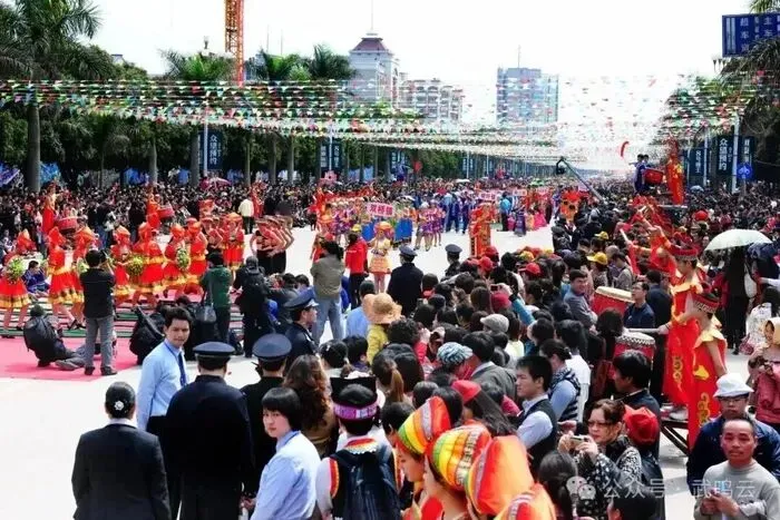 全天:武鸣体育馆广场- 万人山歌会、民族盛装巡游、千人竹竿舞、壮锦绣球