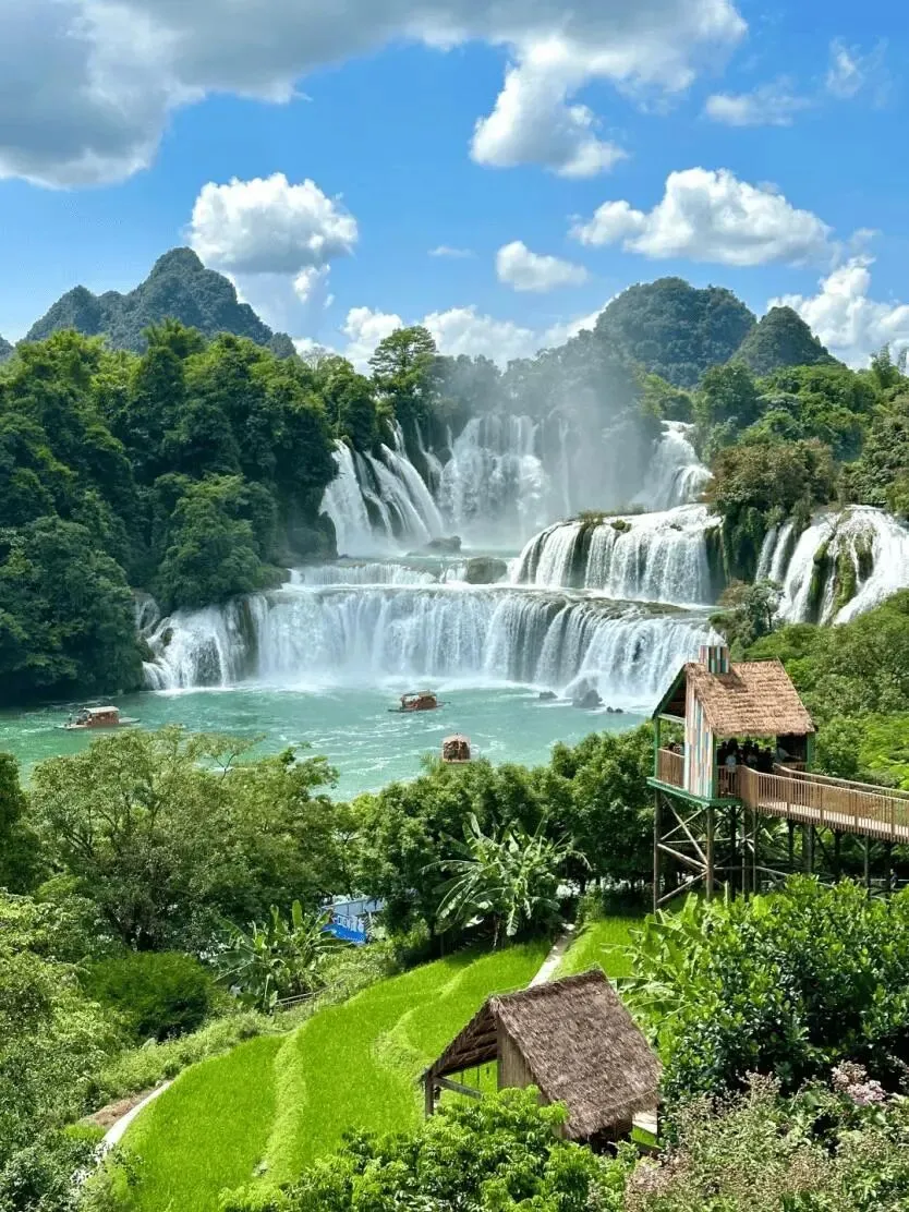 德天跨国瀑布、明仕田园;山水不输桂林,游客少很多。